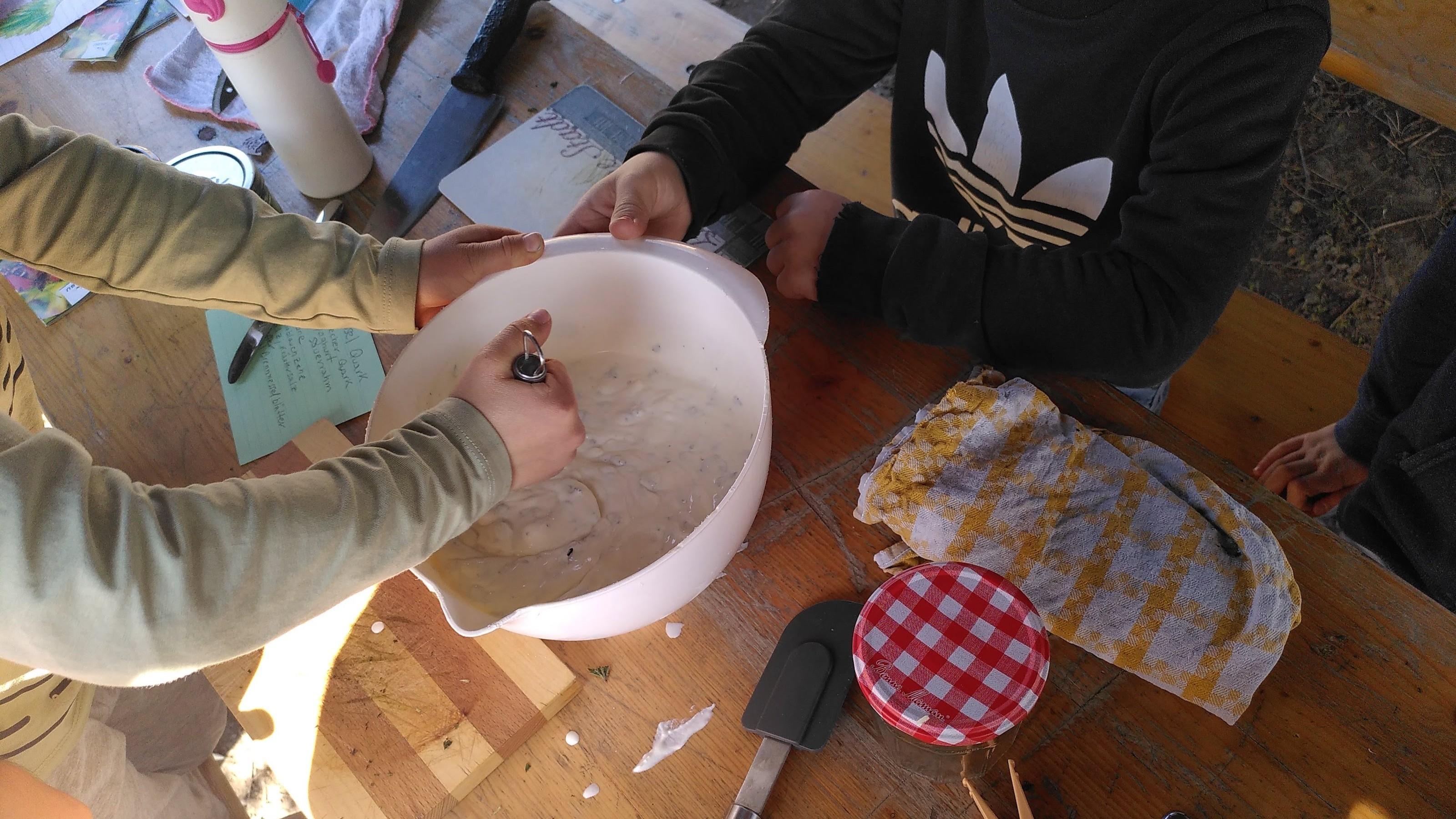 Wir bereiten uns auf die Wintersaison vor und stellen gemeinsam einen Hustensirup aus Spitzwegerich und anderen guten Kräutern her. Anschließend essen wir zusammen am Lagerfeuer ein „Räuberbrot“.